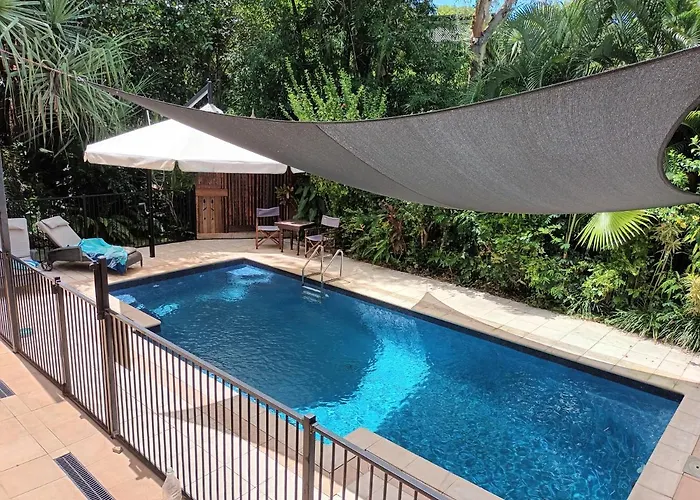 In der 1-Zimmer-Ferienwohnung Tropical Poolside Retreat Nelly Bay, das ca. 3 km von der Alma Bay entfernt liegt, können sich die Gäste auf einer Terrasse entspannen. Diese 90 m² großen Apartments bietet außerdem WLAN und einen einen Privatparkplatz.